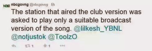 However the NBC has since denied and explained the claims via its official twitter account. The NBC said although the broadcast regulator mentioned that the song was not banned, a radio station was reportedly sanctioned for playing a club version of the song during the ‘Family Time’ belt, the period when children have access to the mass media like TV and radio.
